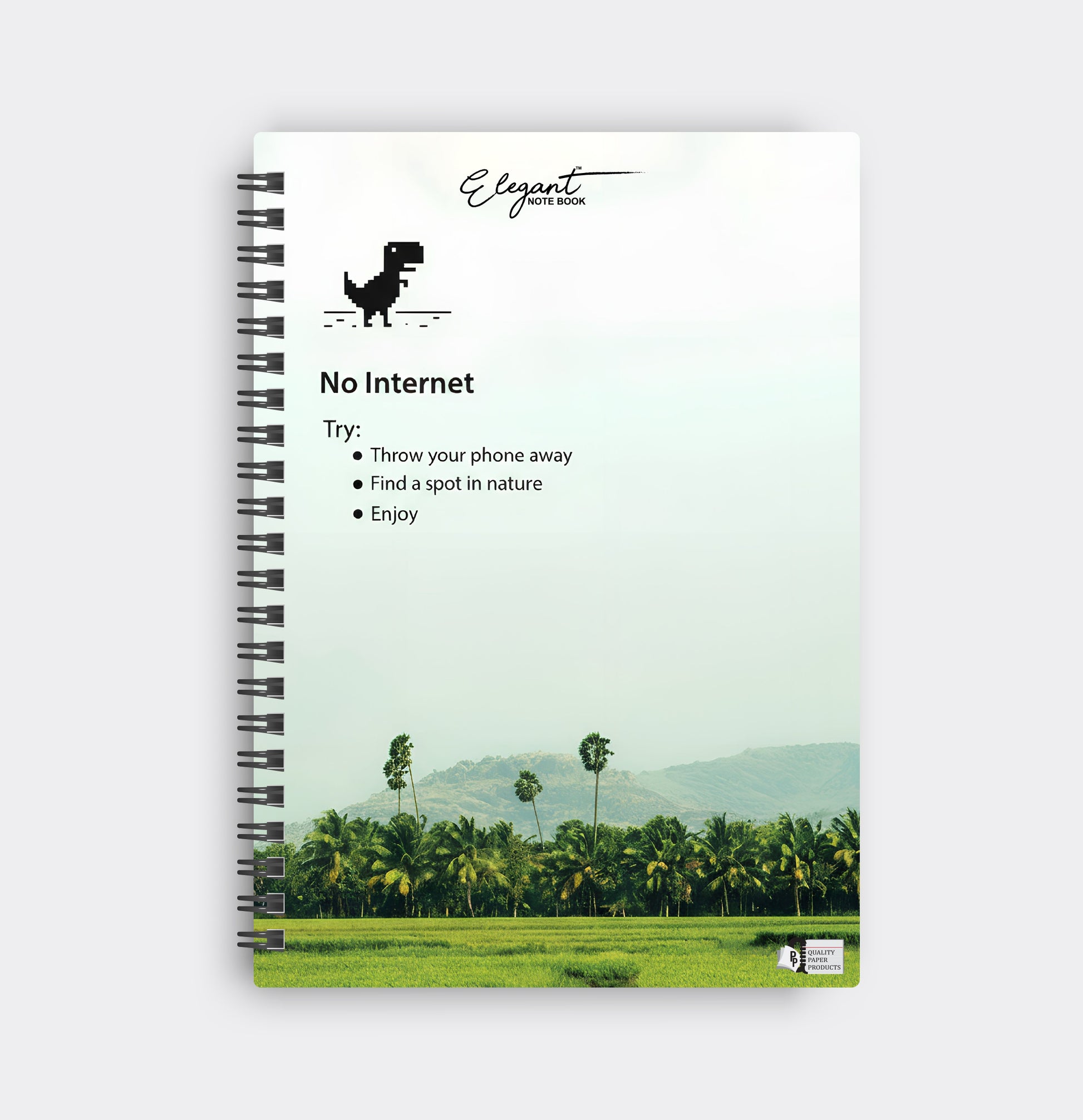 Elegant No Internet A4 Spiral Notebook is crafted with high-quality imported paper for a smooth writing experience. Featuring single-lined pages with a date section and durable spiral binding, it is inspired by the iconic “No Internet” screen, offering a playful yet minimal design that encourages offline focus and creativity.